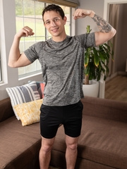 Hung twink boy Leo enjoys anal play