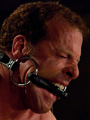 Three doms use and abuse Derek Pain during a live shoot.