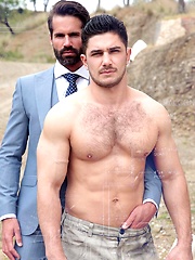 Horny muscle men Matt Cole and Brian Hansen having sex outdoors