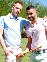 Beefy top settles the score with horny bottom over a hot and sweaty match of croquet.