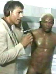 EricDeman catches a hot footballer in the locker room adjusting his towel just before being interviewed and inadvertently revealing his big wet cock.