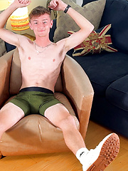 Very fit boy Jack rubbing his cock on the sofa cushions.