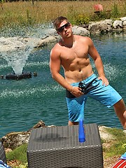 Two Horny Muscle Jocks celebrate their 4th of July with sweaty, park horseplay before heading home for a firework, freedom-fuck finale.