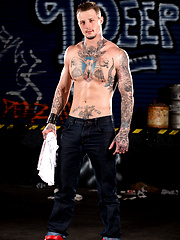The fix. Hot tattooed hairy muscle hunk gets sucked dry
