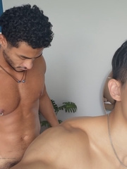 Italian stud Max and brazilian hung man Wagner from Brazil sucking cocks