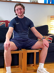 Soccer playing Evan Zero masturbates after his game.