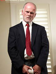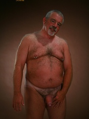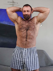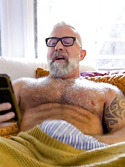 Hairy daddy Tony Thompson strokes his fat uncut dick