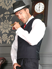 Marcello smoking a cigar in his tuxedo and then rubbing his hard dick