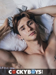 Beautiful curly twink Leo Animo playing with his huge uncut cock