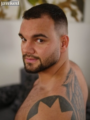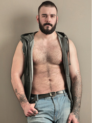 Muscle hunk Alex Fuerte wearing leather gear