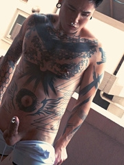 Tattooed guy gets naked