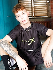 Strawberry blond gym jock Jesse Knight will find a place in your fantasies thanks to his handsome face, fiery red pubes and beautiful uncut cock.