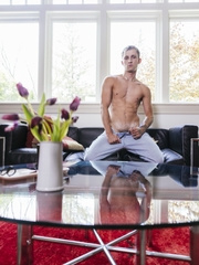 Ripped stud Pierre stroking his firm cock.