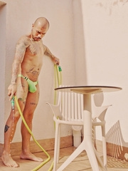 A helpless vagrant gets hosed down and fucked by the creepy handyman