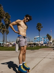 Sexy ukrainian boy with curly hair Elio Pjatteryd plays with his uncut dick