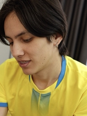 Sexy ukrainian boy with curly hair Elio Pjatteryd plays with his uncut dick