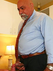 Silver Daddy Jeff Grove wanking off his cock