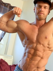 Hot muscle man shows his cock and muscled body