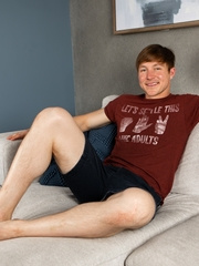 Sexy ukrainian boy with curly hair Elio Pjatteryd plays with his uncut dick