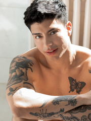 Columbian skinny twink Arty Alan shows his big uncut dick