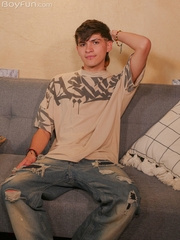 Sexy ukrainian boy with curly hair Elio Pjatteryd plays with his uncut dick